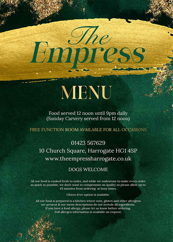 The Empress is a fine old Grade II-listed pub on The Stray in Harrogate. It’s surrounded by beautiful parkland with a beer garden to the rear and outside seating in front. Inside it combines modern décor with a traditional pub feel and has four large screens showing all sporting events, a pool table and darts.